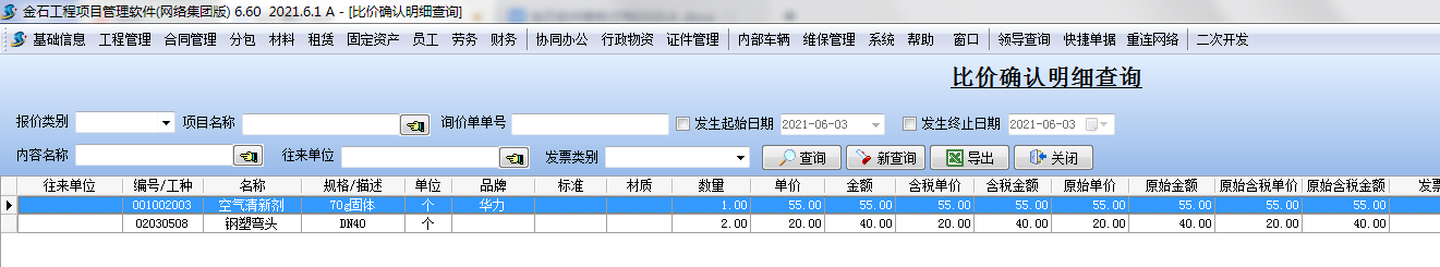 各個供貨商反饋的產品報價信息可通過比價確認單進行匯總。