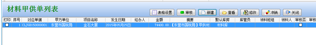 點擊【保存】返回到【材料甲供單列表】界面下,如下圖: