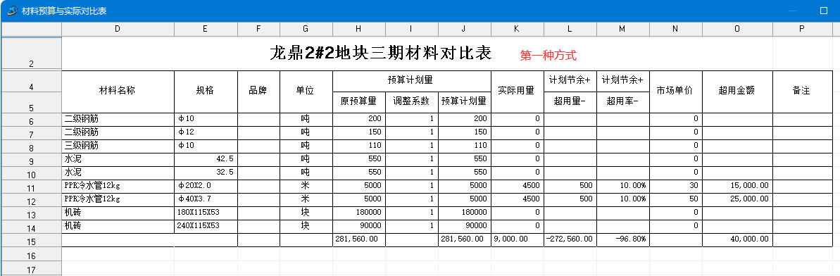 兩算對比指:材料預算單與實際發生的材料進行量、價的對比: