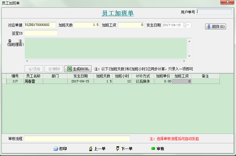 員工加班的流程和請(qǐng)假基本一致,發(fā)起員工加班單后填報(bào)清楚加班事由,發(fā)由上級(jí)審核,審核完成后即可計(jì)入工資。