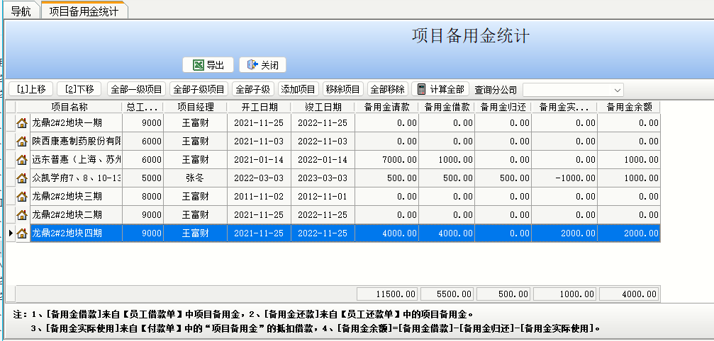 可以按照項目查詢備用金請款、借款、使用、歸還及余額情況。還可以任意篩選項目。