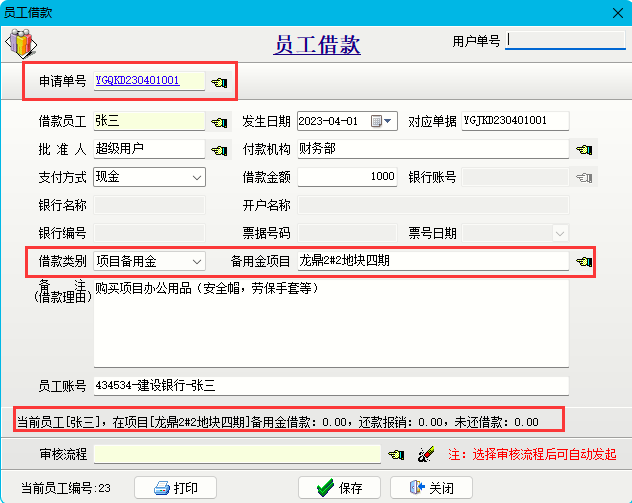 (1)借款:【員工請款單】→審核(可多級審核)→【員工借款單】。