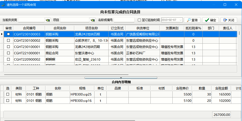 單據點擊付款,生成一張付款申請單(單據執行同一個合同,或者都不執行合同)