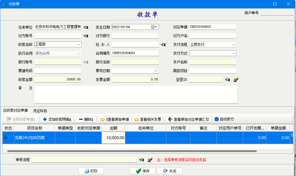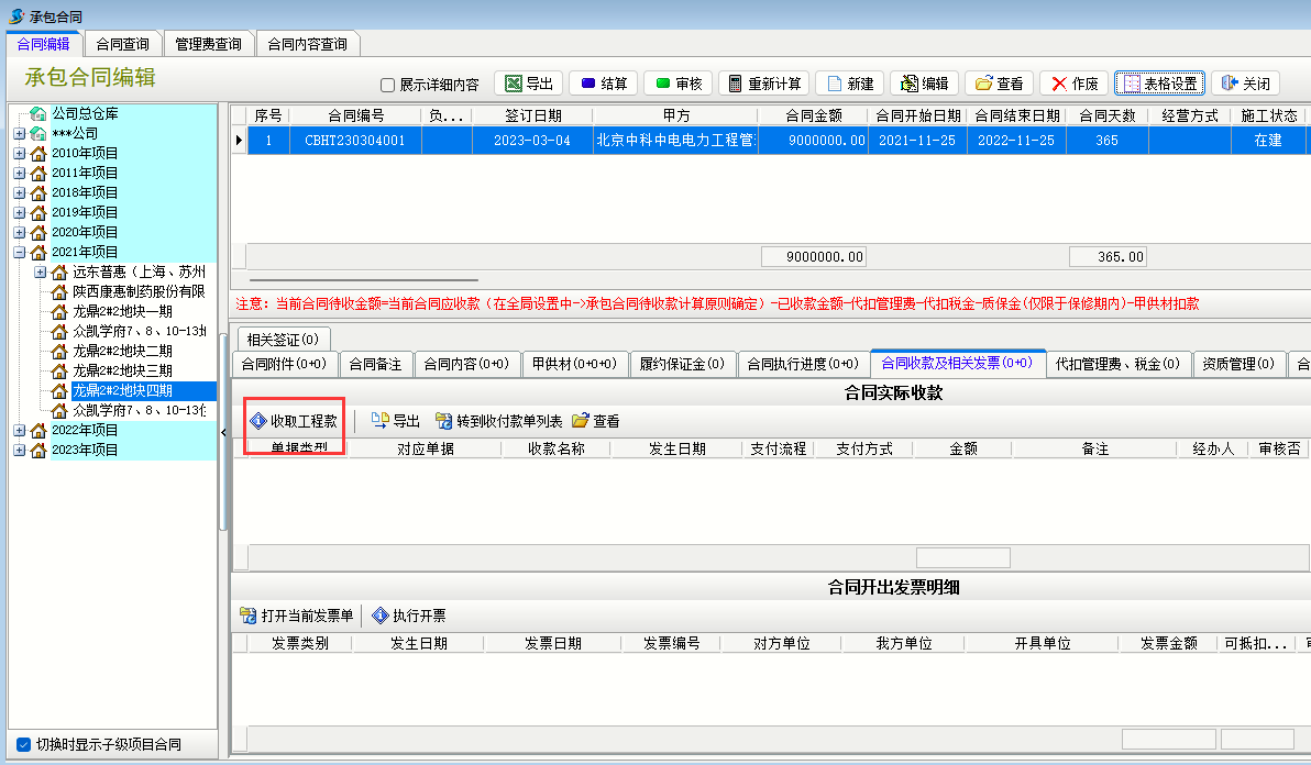 工程收款指的是收取甲方工程款。可以直接在承包合同里點擊收款,或者是直接新建收款單。