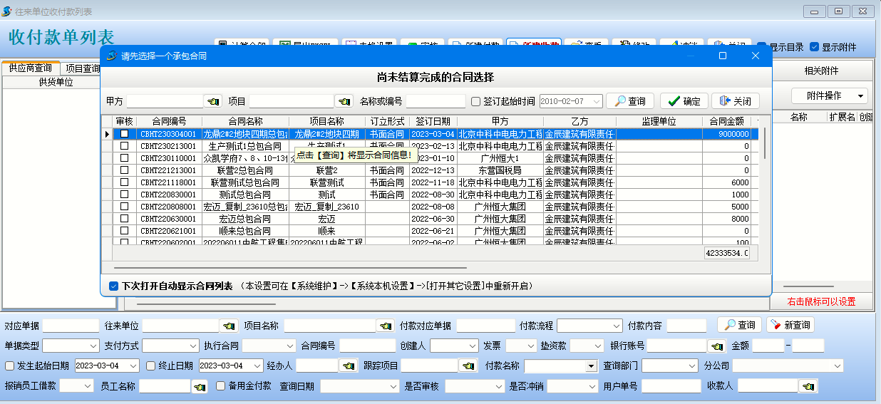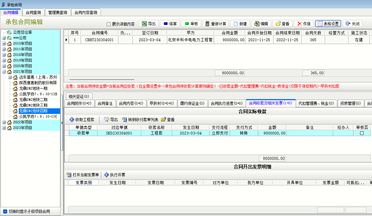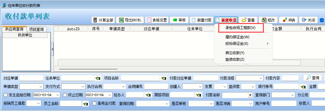 還可以在【財務管理】-【付款單收款單】新建收款單,選擇承包合同工程款