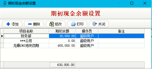 點擊菜單欄【財務】-【現金管理】-【現金期初余額設置】可以按照項目設置現金期初余額。