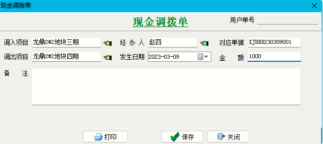 如果從一個公司或者項目現金賬戶調撥到另一個公司或項目現金賬戶可以新建現金調撥單。