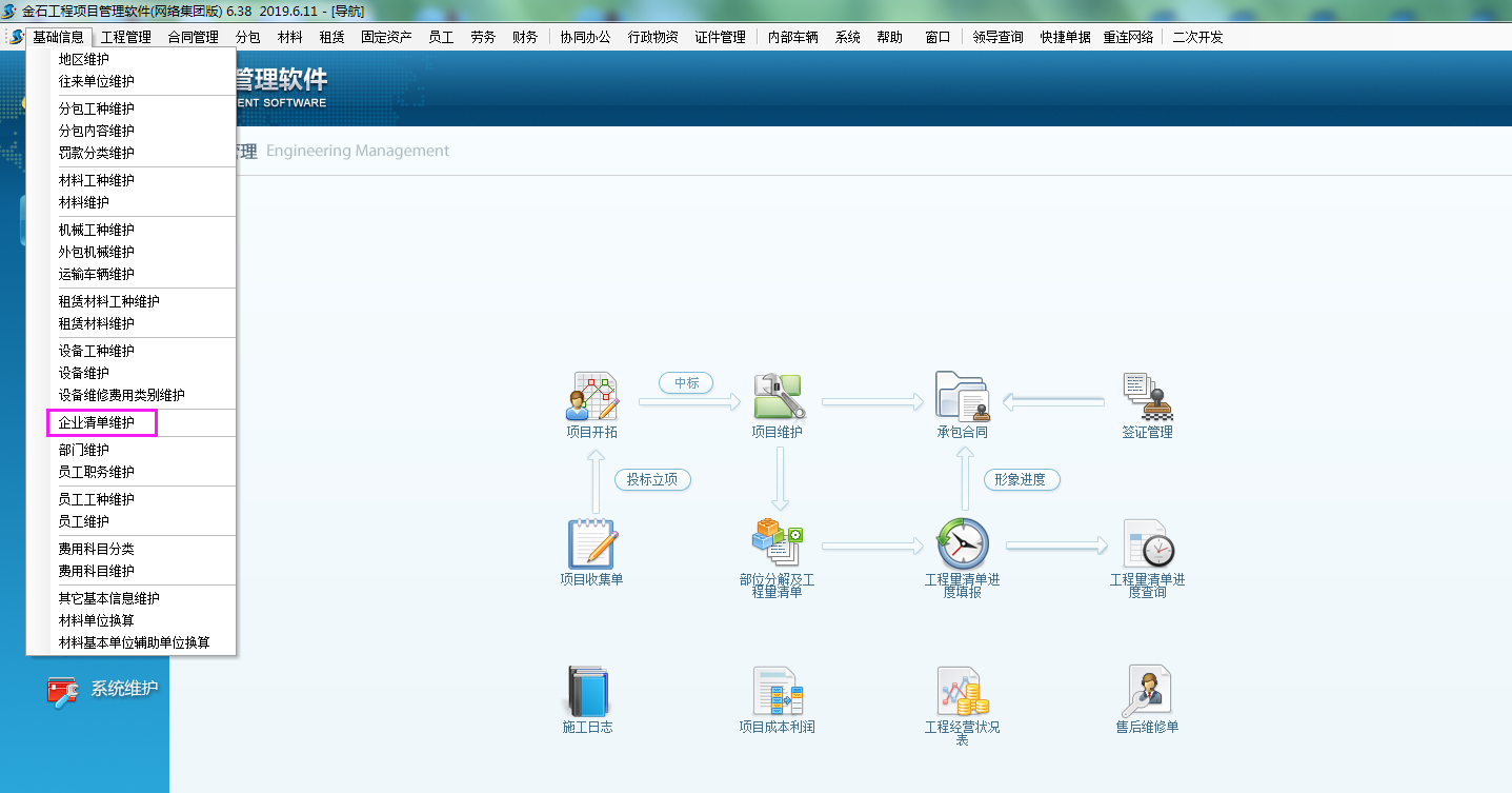 工程項目項目管理軟件公司明細維護是用于維護內部公司明細信息的控制模塊。左側為工程項目項目管理軟件明細分類信息內容,下邊有一排菜單欄按鍵用于創建、刪掉明細分類。“菜單欄按鍵”如下圖:每一個明細還能夠加上工料機信息或是導入excel表格時還能夠同歩導入工料機信息。...