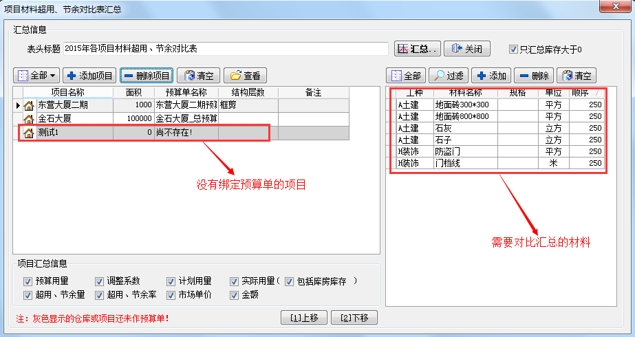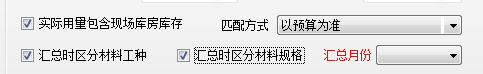 預算單材料名字為標準的,并且預算單里區別了技術工種,因此必須將“歸納時區別材料技術工種”打鉤