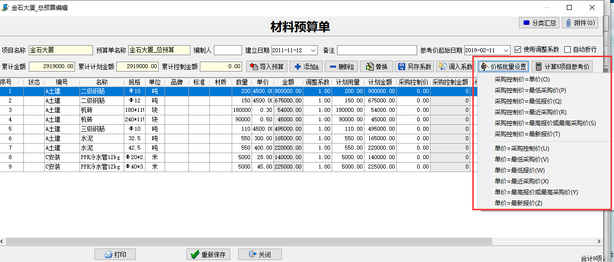 此價錢大批量安裝作用,可以轉化成對預估最精確的材料價格,進而對投標報價給予了重要依據。