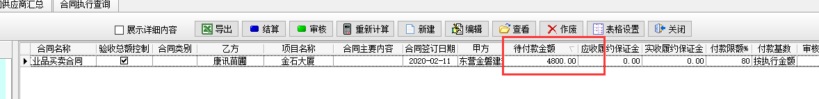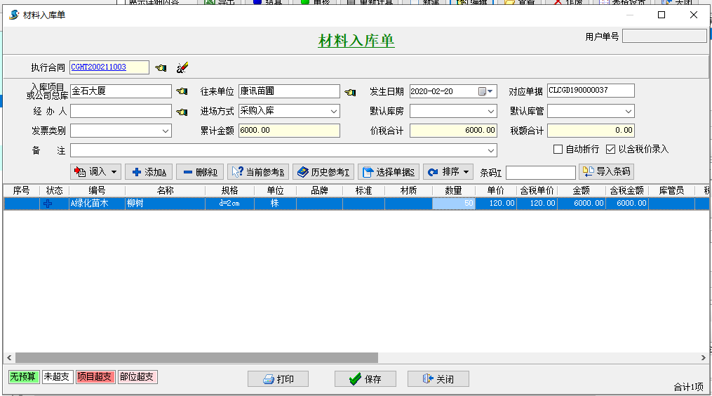 大家對該合同書開展工程驗收,轉化成材料采購單,如下圖
