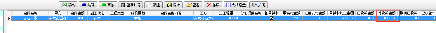 此時(shí)此刻待付款計(jì)算方式,合同金額減掉甲供材額度即10000-2000=8000