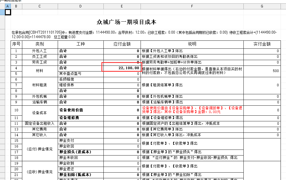 項目成本費查看,如圖: