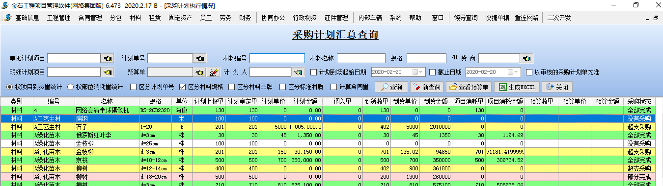 可以設置多種標準來歸納全部的【采購計劃單】的執行狀況,如下圖: