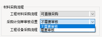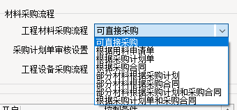 當“工程項目材料采購工作流程”分:“一部分材料依據采購計劃”時可以設置該信息內容。