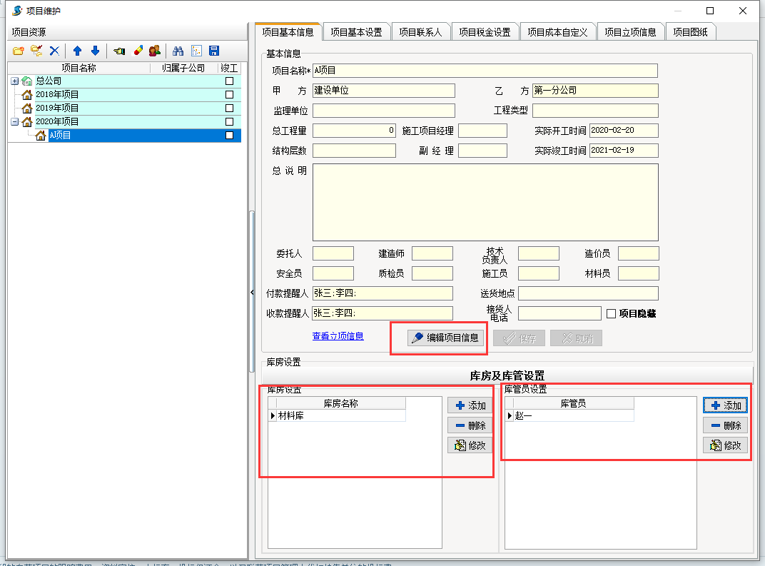 “倉庫設置”搞好倉庫后可以開展材料的庫存管理,操縱好當場材料的收、發、存。針對做安裝、電氣專業的業主而言一般不用倉庫,在這兒可以無須開展維護保養。