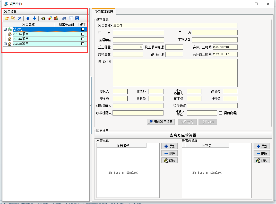 提升子級項目”假如在項目資源中選定的是一個“項目”連接點則將在其下屬創建一個子級項目。假如選定的是一個“庫房”連接點,則將在其下創建一個庫房。