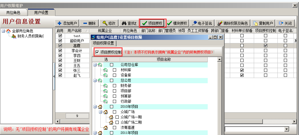 “客戶挑選”用于受權客戶,被認證的客戶有查詢該項目信息內容的管理權限(被認證的客戶務必受系統軟件“項目受權”的操縱)