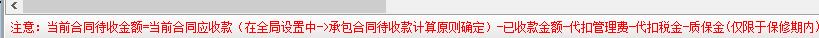 當今合同書應收賬款在“全局性設定”-“承包協議代收貨款測算標準”明確,進到系統軟件的“服務器維護”-“系統軟件全局性設定”-“合同書設定”-“承包協議代收貨款測算次序標準”(自上而下以打鉤且不以零為標準),如下圖: