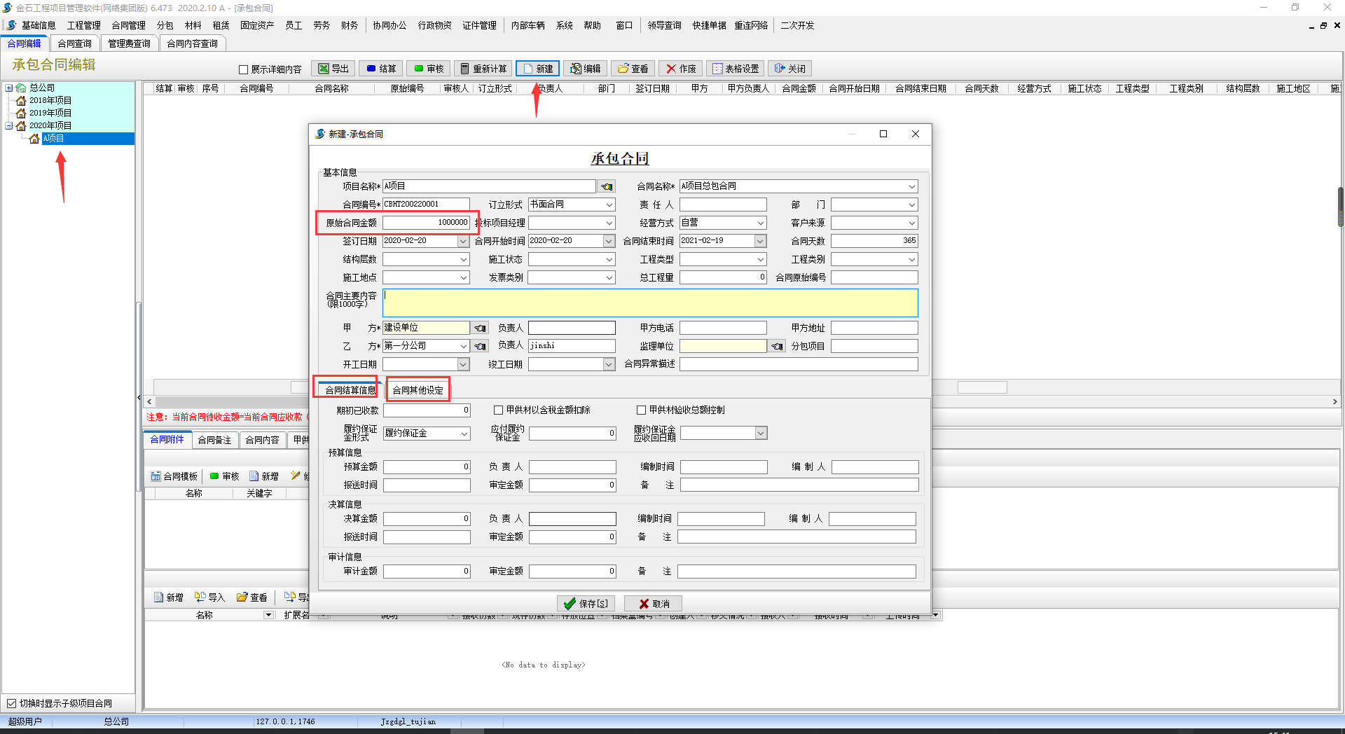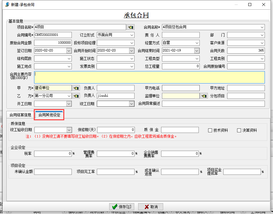 工程結算管理-合同編輯