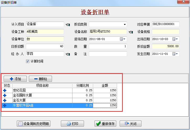 注:【設備報損單】金額將直接影響當前項目成本。注:【設備維修單】金額將直接影響當前項目成本,如果維修費用為1000元,則項目成本將增加1000元。設備報損單界面如下:。設備折舊單界面如下:。該文件影響【工程成本】和【設備庫存匯總表】。...