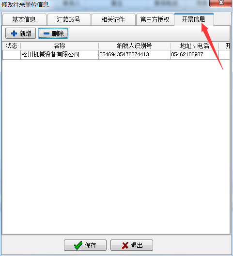建好客戶的基本信息后,在增加匯款賬號及開票信息,如下圖: