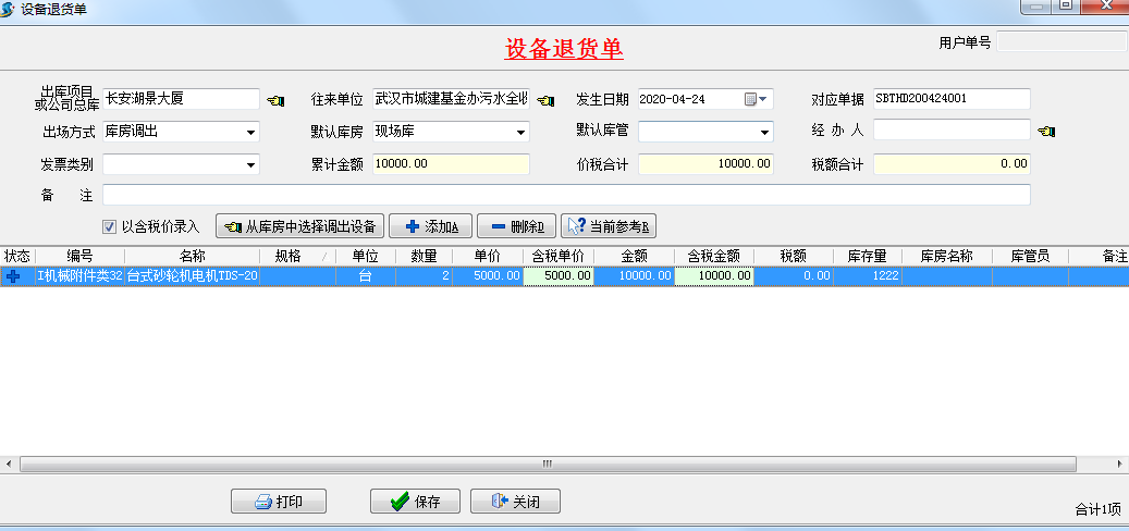 設(shè)備采購(gòu)、調(diào)撥、退貨