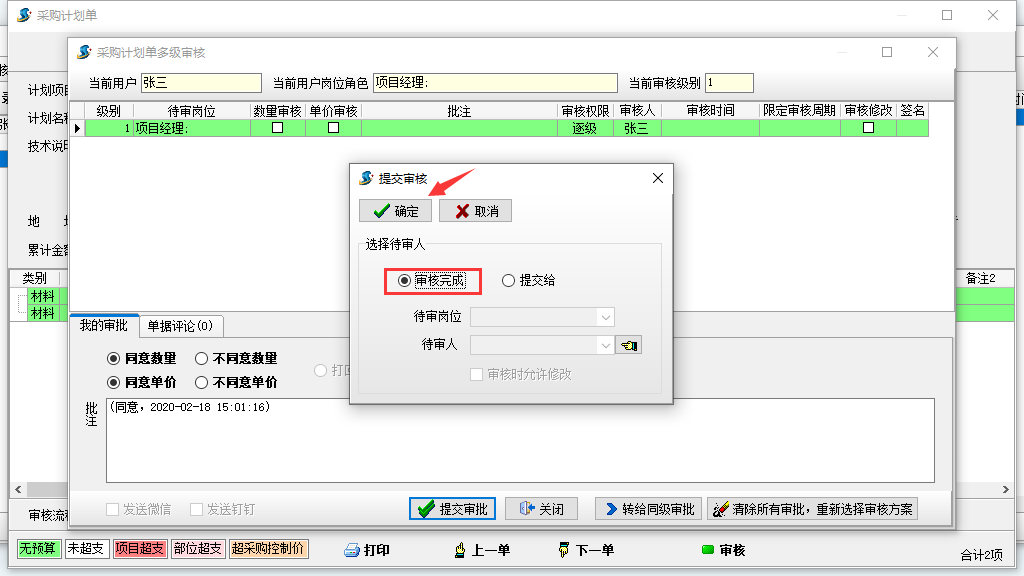 指定審核人進入系統后,點擊審核完成或提交給下級,直至文件狀態為審核完成