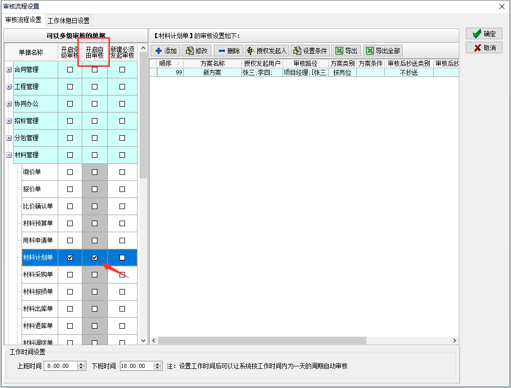 若文件開啟自由審核,則在文件對應的自由審核復選框中打鉤,如圖所示:
