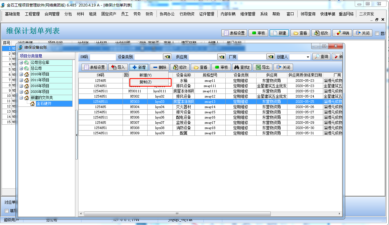 增加數據信息時,如果有相近的數據信息,可以立即選定某條數據信息,開展‘拷貝’數據信息,隨后改動一部分信息內容。如下圖: