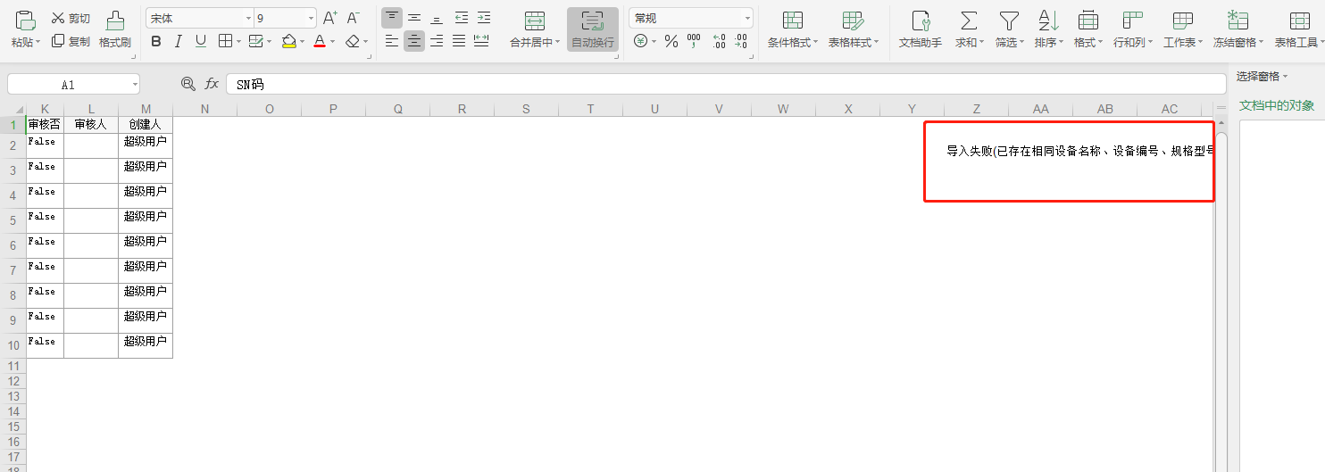 導進進行后會轉化成導進結果的excel文檔,數據信息導進不成功的會展現導進不成功的緣故,如下圖: