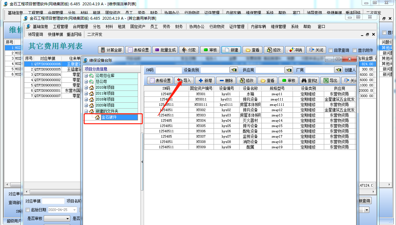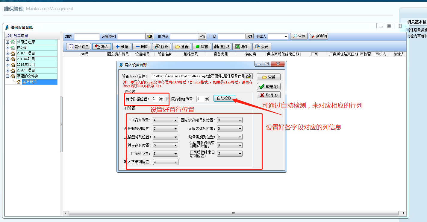 入錄前期,假如設備臺賬信息內容比較多,必須將賬表信息錄入到操作系統中的話勞動量較為大。可運用批量導入的作用將賬表導到系統軟件中。