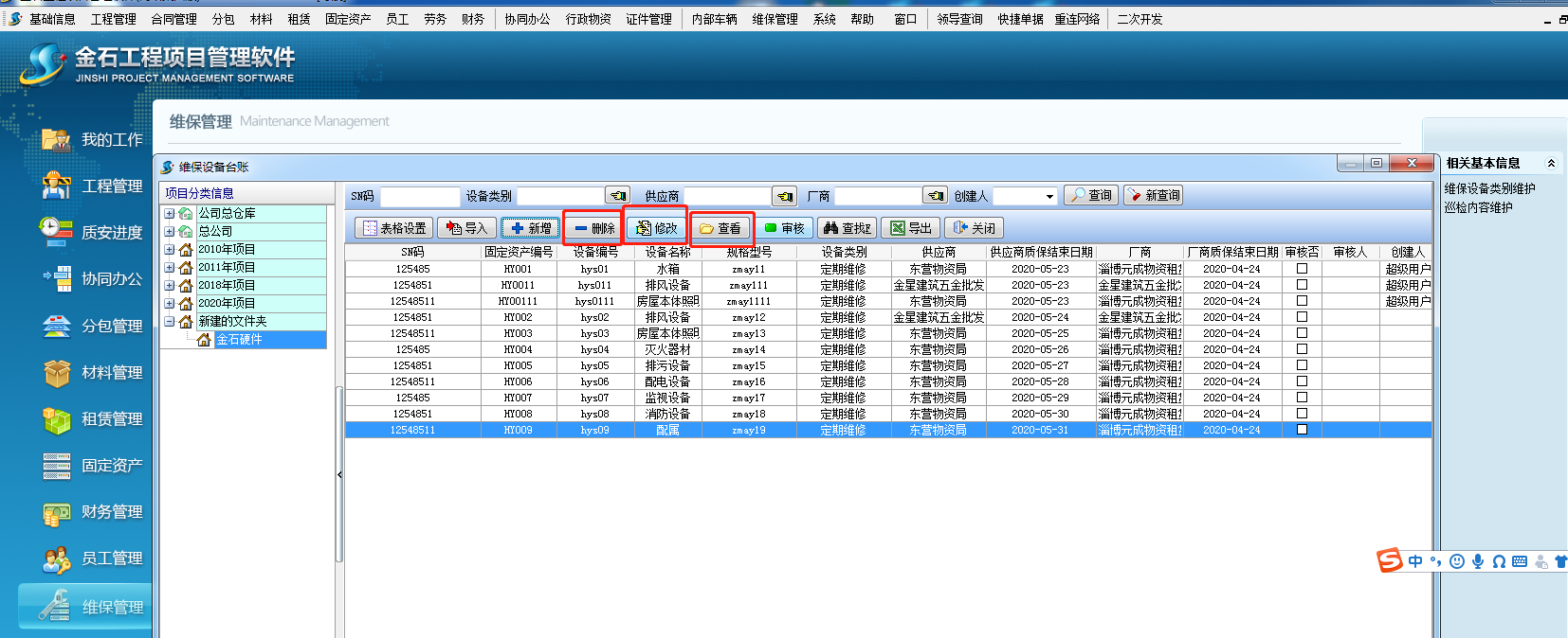 維保設備臺賬