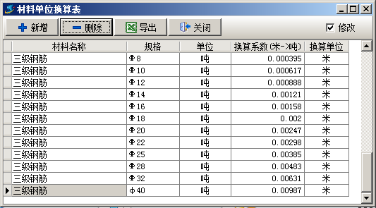 材料單位換算表