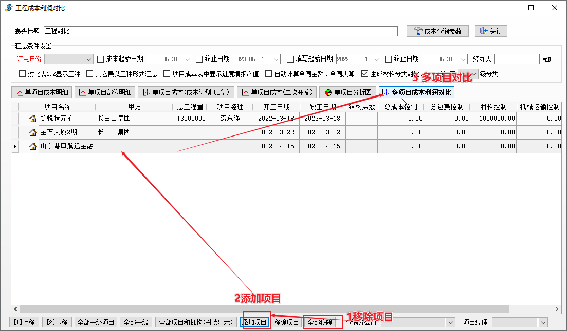 下圖為多項目成本利潤對比的截圖。