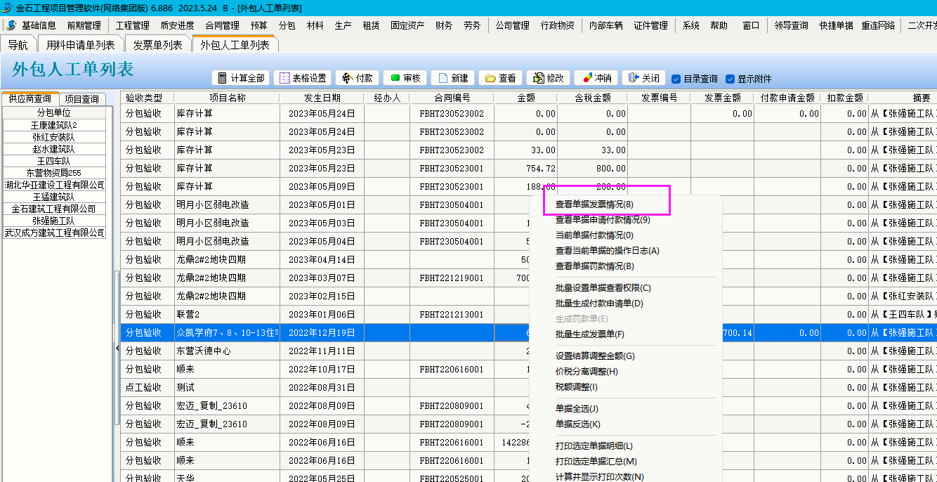 右鍵還可以查詢發(fā)票情況