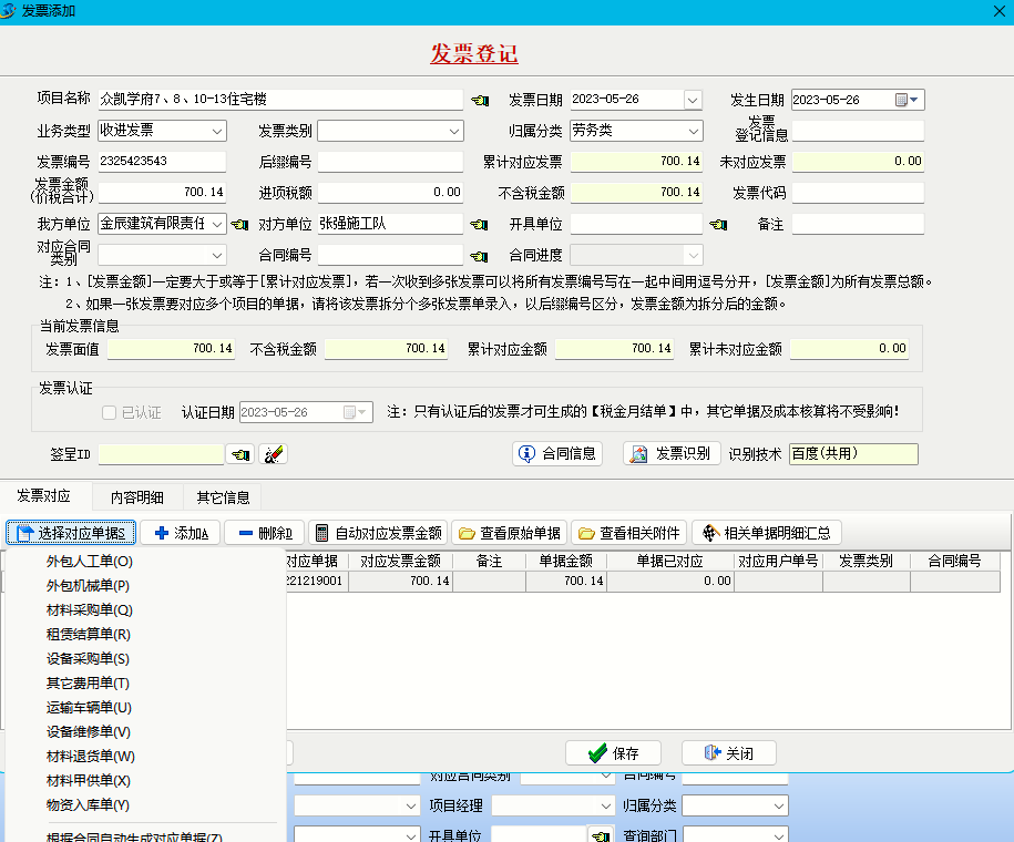 填寫發(fā)票單時(shí)可以對(duì)應(yīng)業(yè)務(wù)單據(jù),方便查詢每次發(fā)生的業(yè)務(wù)是否來票。