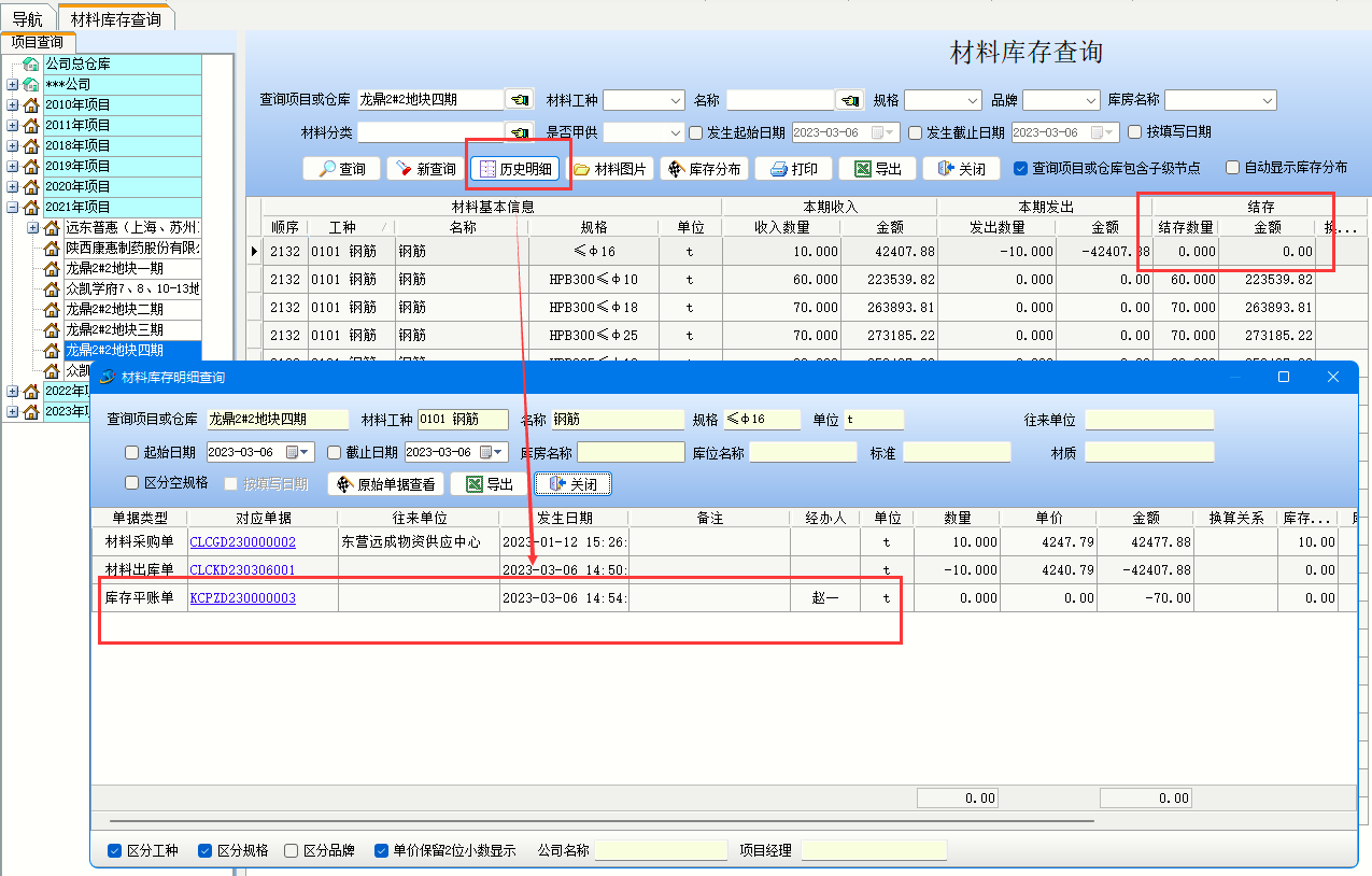 點擊歷史明細還可以查看庫存平賬單記錄。