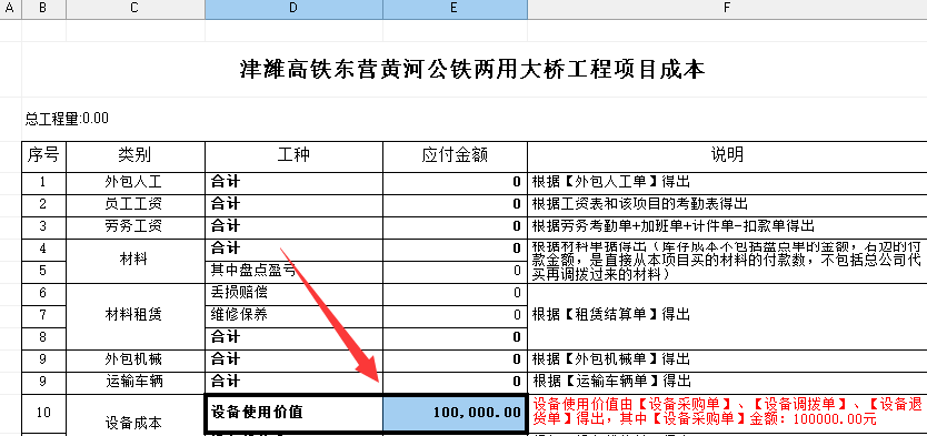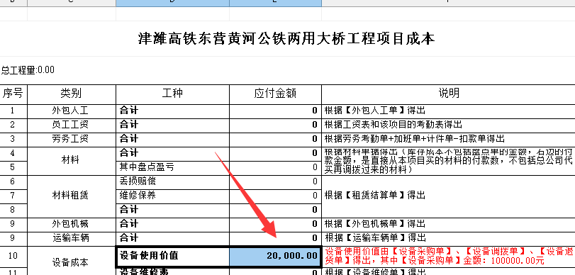 例如:我們買入一臺設備,采購單價單價10萬、用完后歸還給公司設備殘值為8萬元,留2萬元作為本項目成本(下圖)