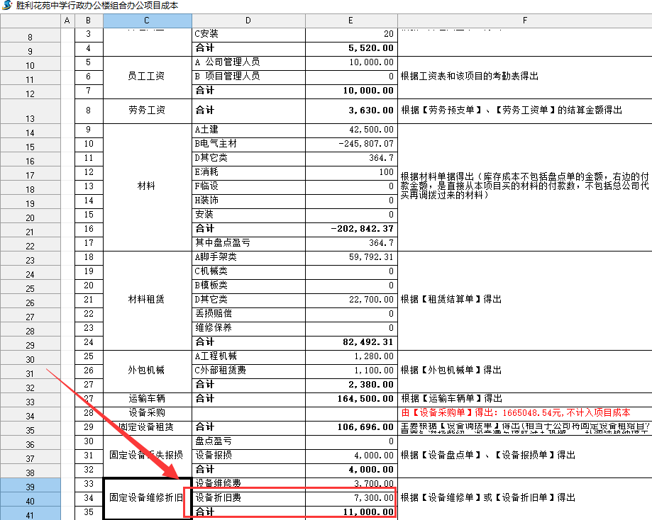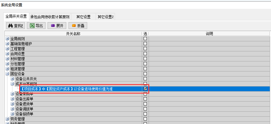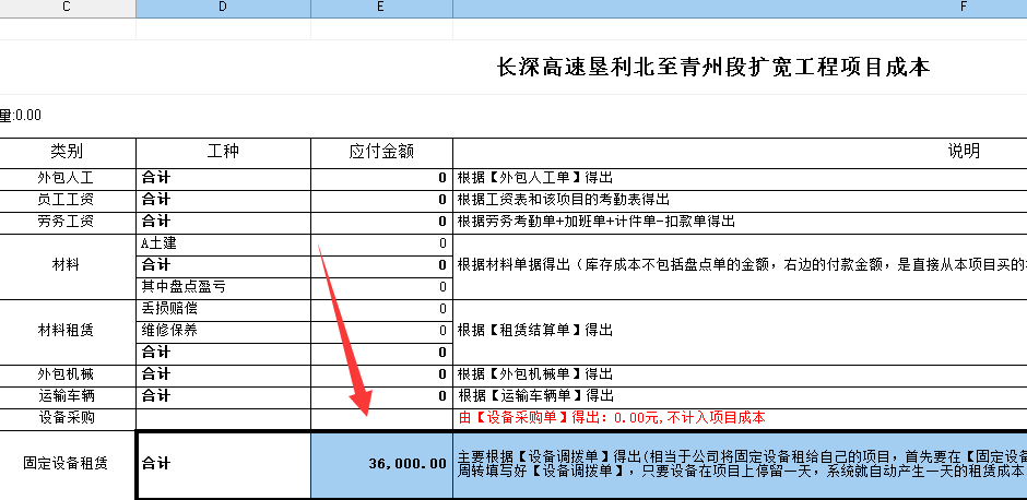 本功能適用于價值較高設備采用“內租”以分攤租費方式計入各項目成本