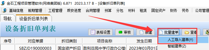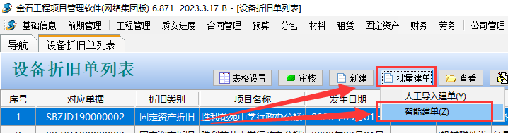 應用場景:【設備折舊單】是用來計算設備折舊的業務單據。錄入本單據前,需先錄入要用到的基礎信息中的【設備維護】、【項目維護】。該單據影響【工程成本】。