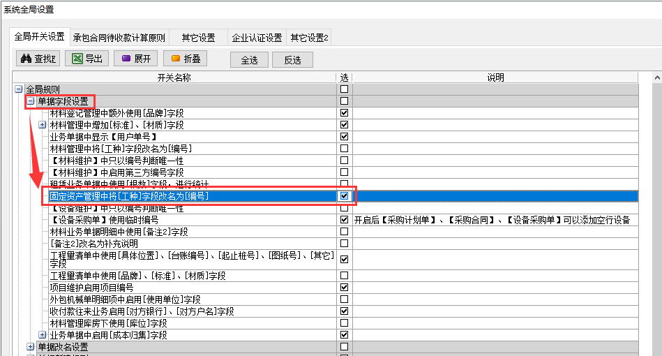 使用本功能需先進入【系統全局設置】中開啟(下圖)中開關