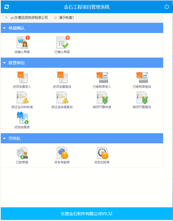 金石軟件提供分包商或者供應商單據確認功能,例如收到供應商材料后填寫材料驗收單,填寫后或者審核后可以讓供應商確認一次。針對掛靠項目可以讓掛靠單位申請開票或者付款。