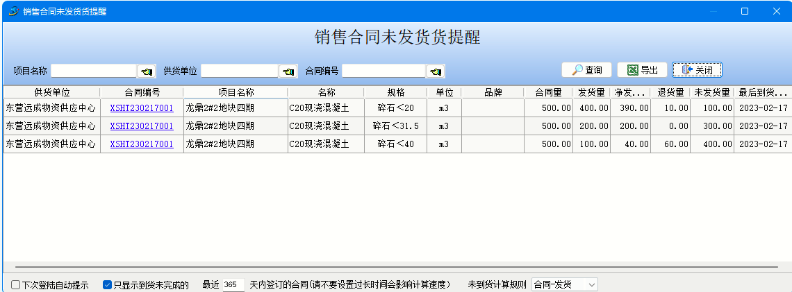 9.9.4材料銷售相關查詢(1)銷售合同未發貨提醒