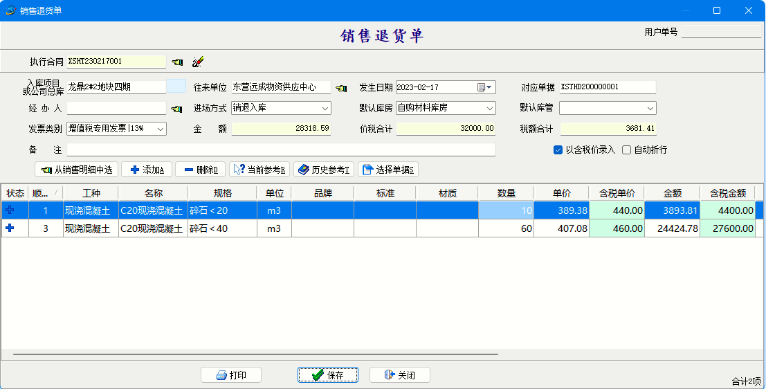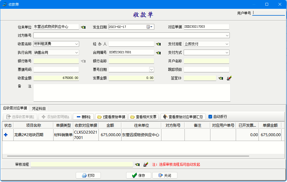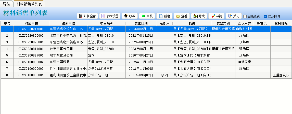 【材料銷售單】是執行材料銷售的單據,如果有合同可以在合同里直接執行,如果沒有合同可以直接新建單據。