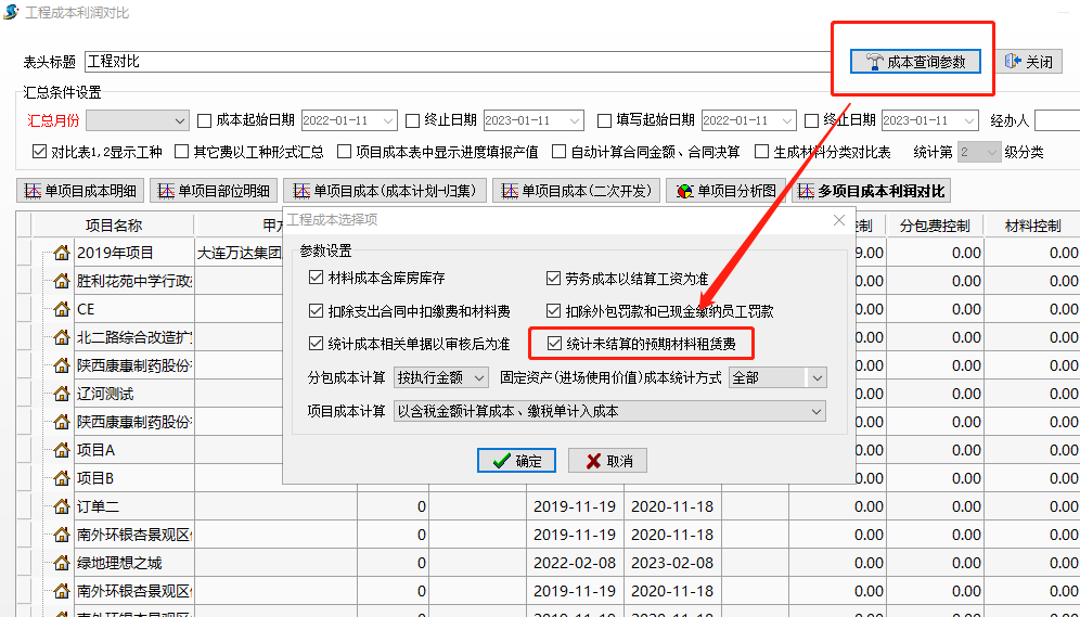 (2)預期材料租賃成本在【項目成本利潤】的體現(xiàn),如下圖所示: