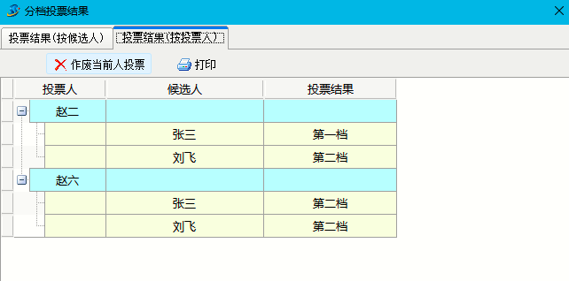 查看投票結果,還可以針對未投票人員催投。按照投票人查看投票結果