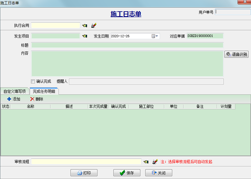 施工日志是記錄工程每日進(jìn)展的基礎(chǔ)單據(jù),項(xiàng)目每日進(jìn)展過(guò)程中發(fā)生的各類情況都可以通過(guò)項(xiàng)目日志反饋。