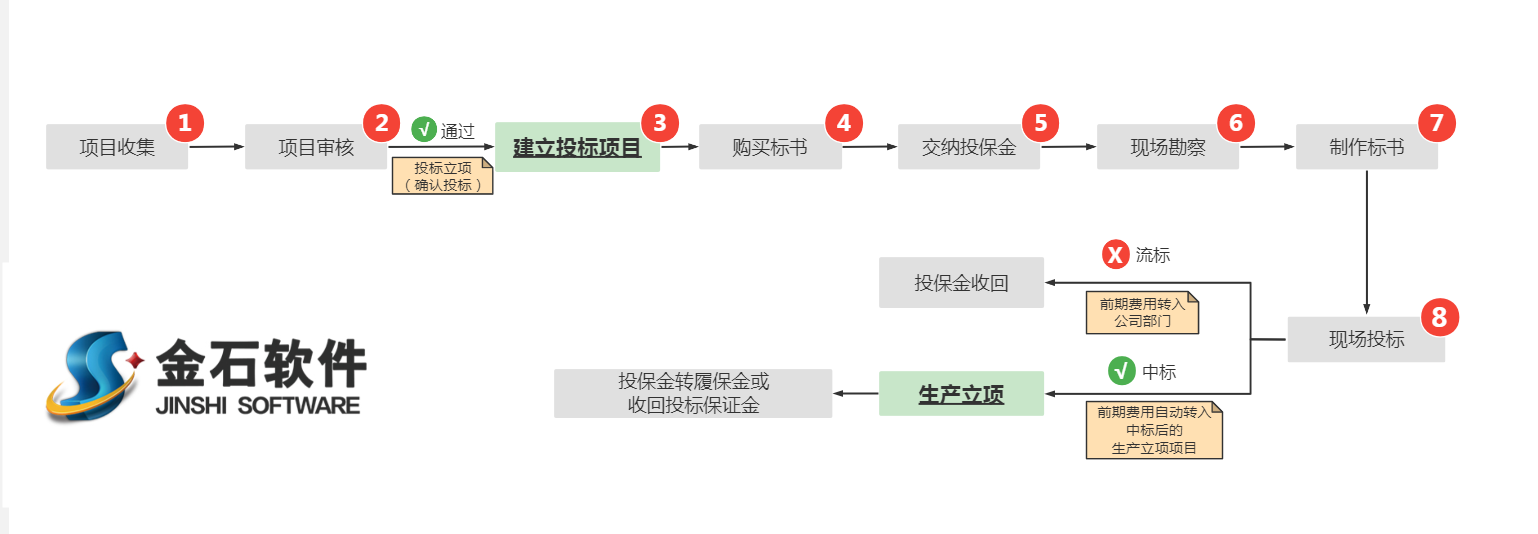 | 工程管理 | 項目收集 | 用于收集可能會參與投標的項目;審批后進入投標立項階段 |