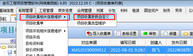 點擊[新建]填寫項目中的基本信息及重要時間節點。如果項目收集單中現有的字段不能滿足需求,可以進行自定義字段。